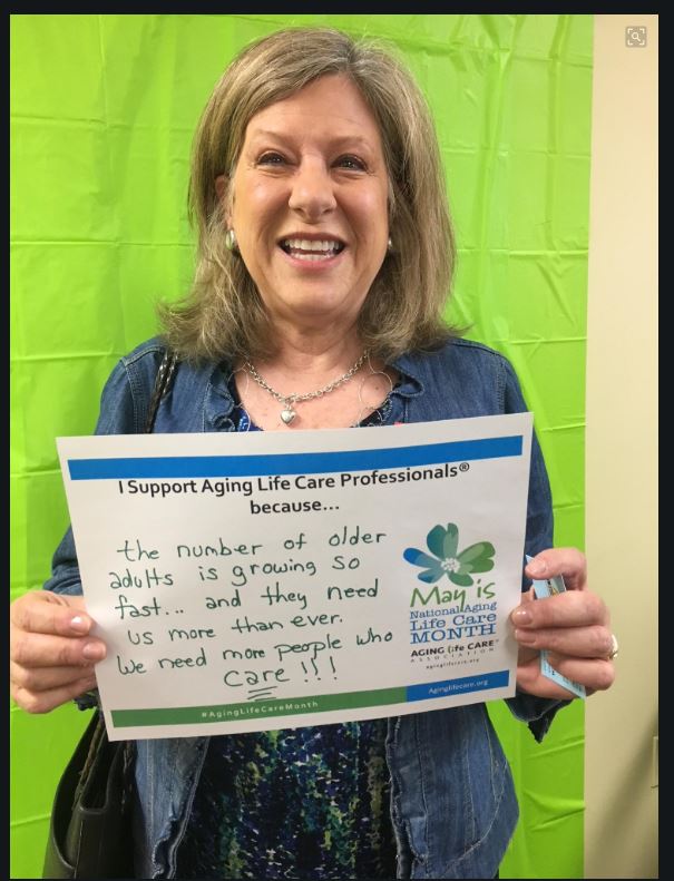 Many took to social media to share Aging Life Care stories via selfies and videos. Each week, ALCA asked members to share something from their world as Aging Life Care Professionals. During the month, several common themes emerged – a passion for helping families through difficult times, an appreciation for the wisdom of an older generation, resiliency, advocacy, care, and the need for daily hope and laughter. Below is a look at some of the photos shared during #AgingLifeCareMonth.
